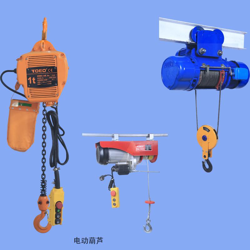 現(xiàn)在比較常見的電動葫蘆型號有環(huán)鏈電動葫蘆、鋼絲繩電動葫蘆、防爆電動葫蘆、微型電動葫蘆、非標電動葫蘆、群吊電動葫蘆等等,微型電動葫蘆一般是用來家庭使用的,其中鋼絲繩電動葫蘆又分為CD1型單速鋼絲繩電動葫蘆、MD1型雙速鋼絲繩電動葫蘆、冶金電動葫蘆、礦用電動葫蘆、變頻型電動葫蘆、雙鉤電動葫蘆等等。防爆電動葫蘆又分為bt4和ct4兩大等級,環(huán)鏈電動葫蘆分為固定式電動葫蘆、運行式電動葫蘆、低凈空電動葫蘆等,群吊電動葫蘆是用于油罐爬架多臺電動葫蘆一起來使用的,大家在選擇的時候,可以根據(jù)自己的實際要求,來選擇不同的產(chǎn)品。